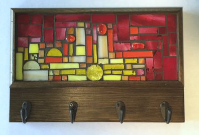 This first piece is a a beautiful mosaic glass key rack, followed by a rustic mail organizer/ key rack and a standard but very unique rustic wood coat rack.