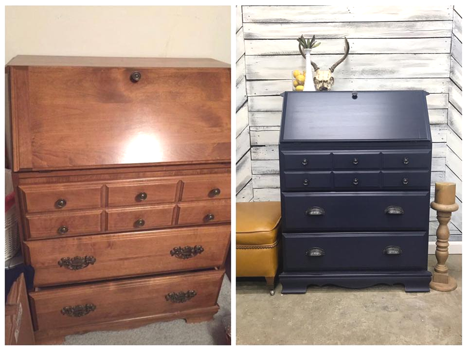 First up is my new acquaintance and friend Re-Luv'd Furniture submitted these before and afters of a dresser she recently finished using D. Lawless Hardware and General Finishes Paint. Looks great and she chose the perfect hardware!
